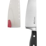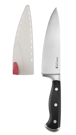 Sabatier Knife and Sheath. The sheath has a sharpening steel in it. When theknife is removed from the protective sheath it hones the blade. SRP for 8-inch kknife $25.61
